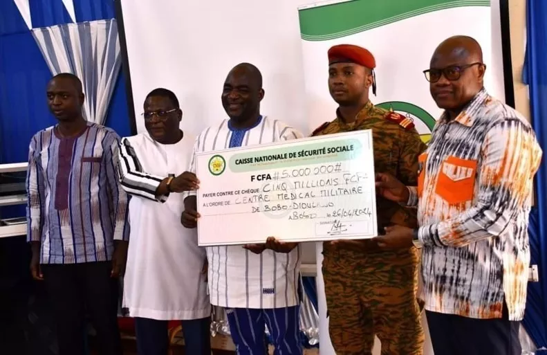 Aussi, un chèque de cinq millions (5 000 000) FCFA a été remis au Centre médical militaire de Bobo-Dioulasso, pour la prise en charge des soins des Forces de défense et de sécurité (FDS) ainsi que les Volontaires pour la défense de la patrie (VDP) blessés dans la lutte contre le terrorisme.
