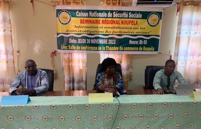 Les communications étaient relatives aux généralités sur la CNSS, aux prestations sociales servies, à la branche des risques professionnels, à l’assurance vieillesse, à l’assurance volontaire et au recouvrement des cotisations sociales. Elles ont été assurées respectivement par le Directeur régional de Fada, Salifou Lougué, le Chef d’agence de Tenkodogo, Jean-Baptiste Ouédraogo, le Chef du service prestations de Fada, Hamiyabidi Tankoano et le Chef du service recouvrement, Mahamadou Sinté.
